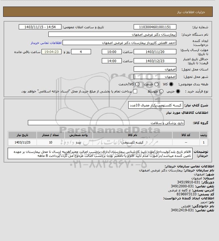 | 1 | -- | کیسه کلستومی | عدد | 10 | 1403/11/25 |