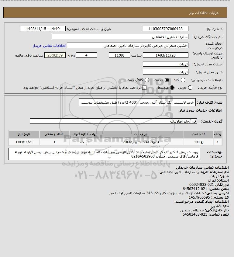 نام سازمان خریدار: سازمان تامین اجتماعی