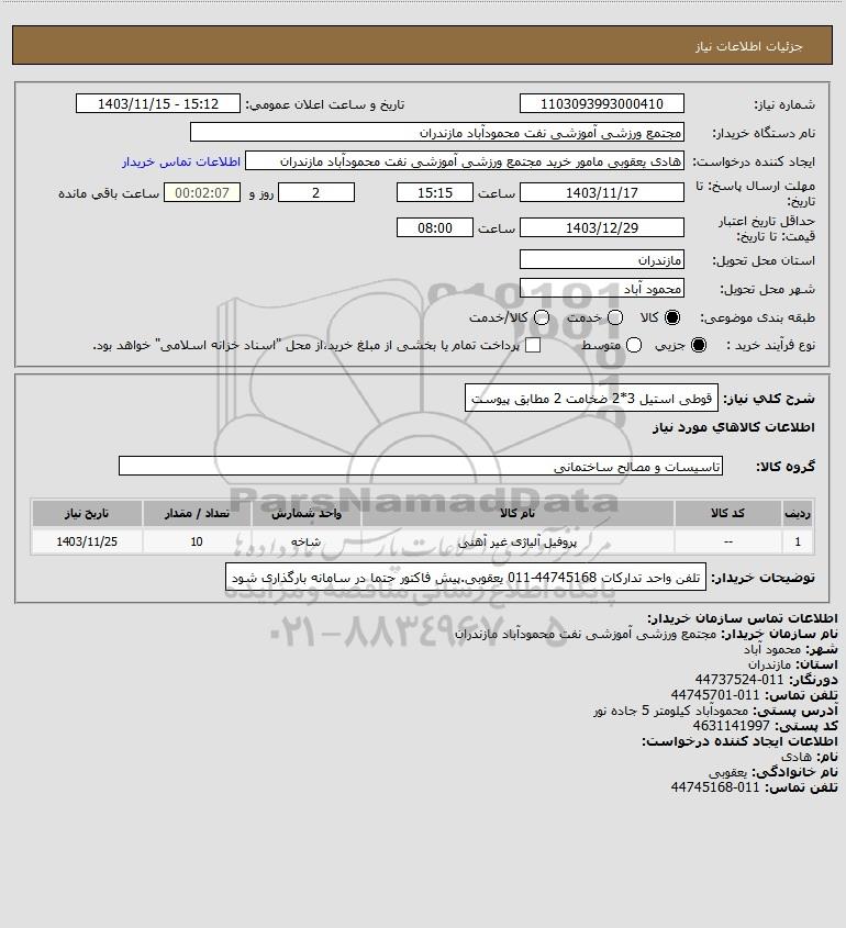 | 1 | -- | پروفیل آلیاژی غیر آهنی | شاخه | 10 | 1403/11/25 |