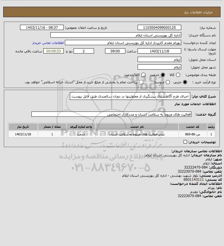 شرح کلی نیاز: اجرای طرح آگاهسازی پیشگیری از معلولیتها در دوران سالمندی طبق فایل پیوست