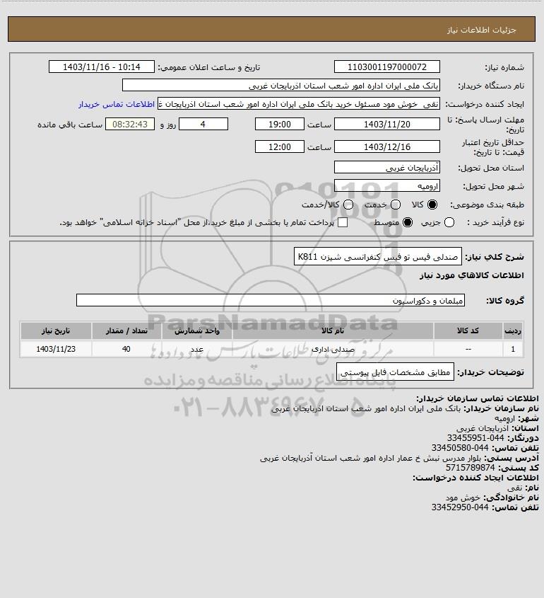 شرح کلی نیاز: صندلی فیس تو فیس کنفرانسی شیزن K811