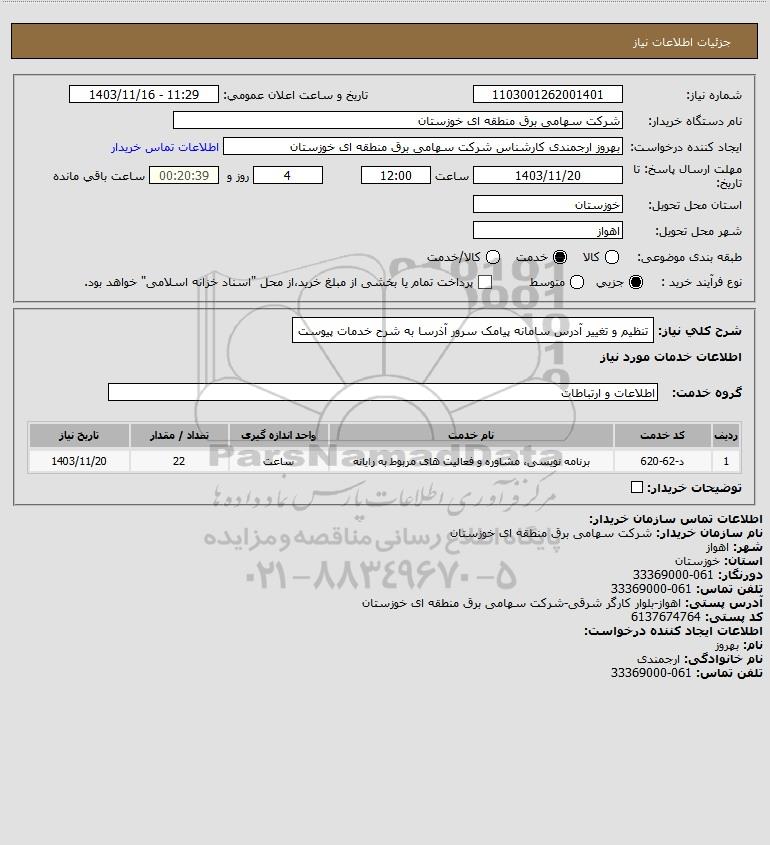 نام دستگاه خریدار:شرکت سهامی برق منطقه ای خوزستان