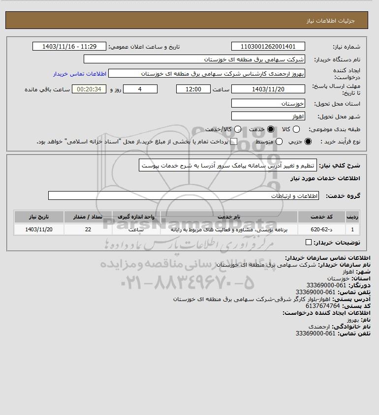 نام دستگاه خریدار:شرکت سهامی برق منطقه ای خوزستان
