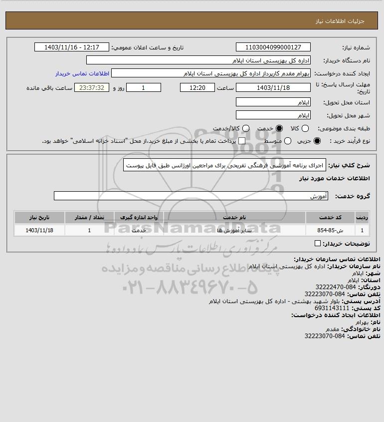 شرح کلی نیاز: اجرای برنامه آموزشی فرهنگی تفریحی برای مراجعین اورژانس طبق فایل پیوست