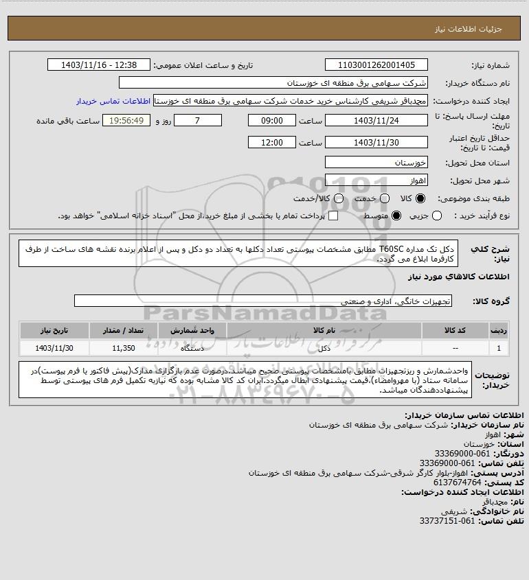 نام دستگاه خریدار:شرکت سهامی برق منطقه ای خوزستان
