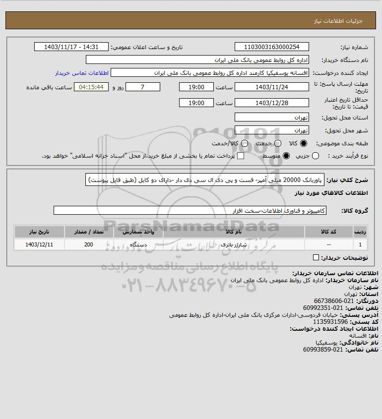 استعلام پاوربانک 20000 میلی آمپر- فست و پی دی ال سی دی دار -دارای دو کابل (طبق فایل پیوست), استعلام پاوربانک 20000 میلی آمپر- فست و پی دی ال سی دی دار -دارای دو کابل (طبق فایل پیوست)