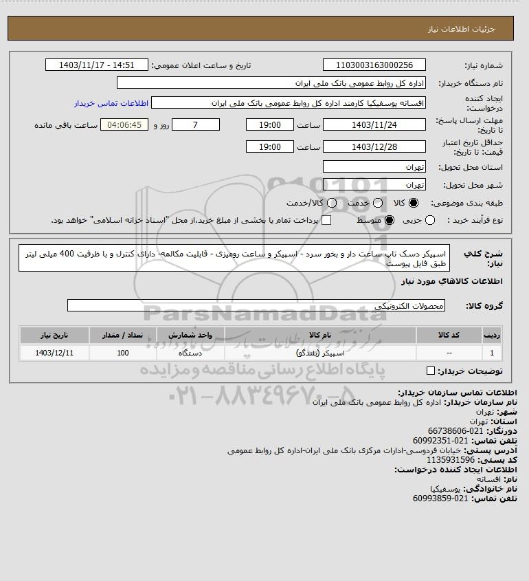 نام دستگاه خریدار:اداره کل روابط عمومی بانک ملی ایران