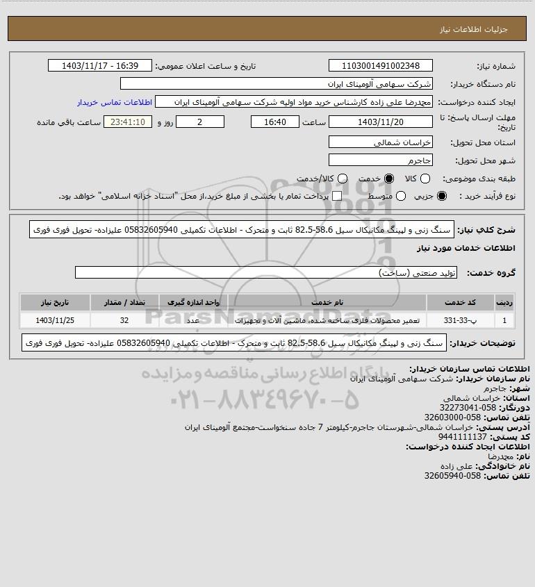 شرح کلی نیاز: سنگ زنی و لپینگ مکانیکال سیل 58.6-82.5 ثابت و متحرک - اطلاعات تکمیلی 05832605940 علیزاده- تحویل فوری فوری