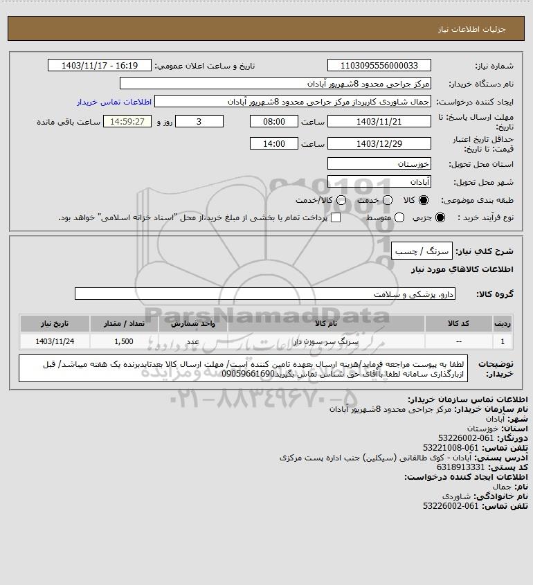 نام دستگاه خریدار:مرکز جراحی محدود 8شهریور آبادان