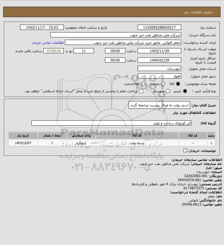 نام دستگاه خریدار:شرکت ملی مناطق نفت خیز جنوب