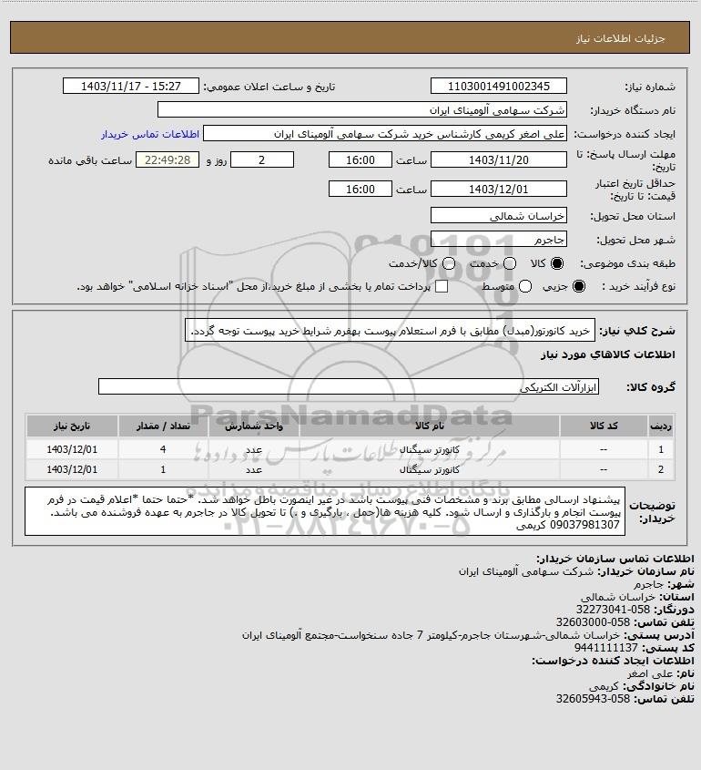 شرح کلی نیاز: خرید کانورتور(مبدل) مطابق با فرم استعلام پیوست