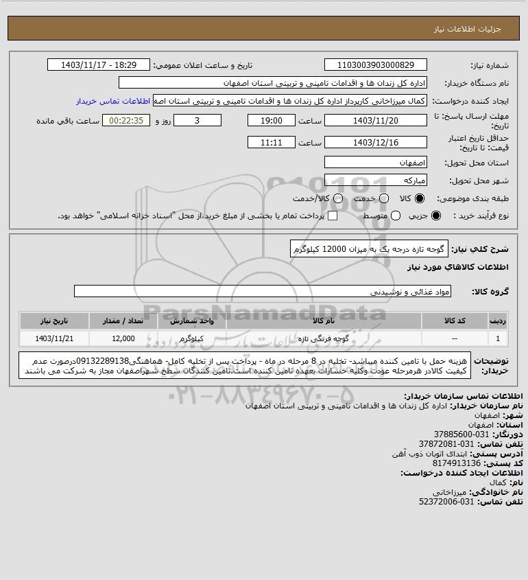 | 1 | -- | گوجه فرنگی تازه | کیلوگرم | 12,000 | 1403/11/21 |