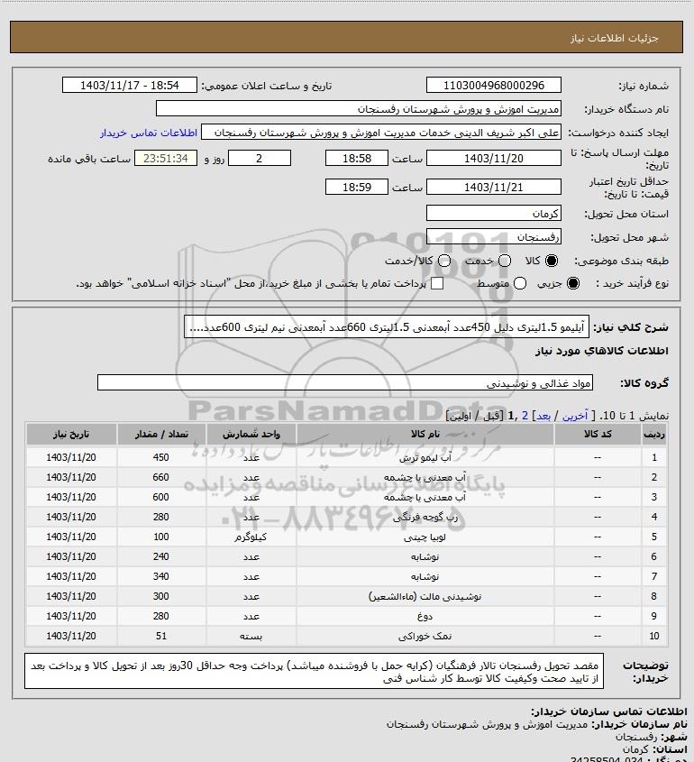 نام دستگاه خریدار:مدیریت اموزش و پرورش شهرستان رفسنجان