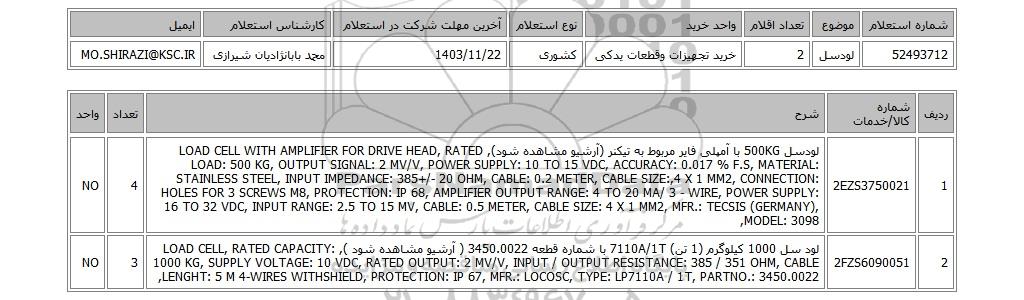 52493712لودسل2خرید تجهیزات وقطعات یدکیکشوری1403/11/22محمد بابانژادیان شیرازیMO.SHIRAZI@KSC.IR