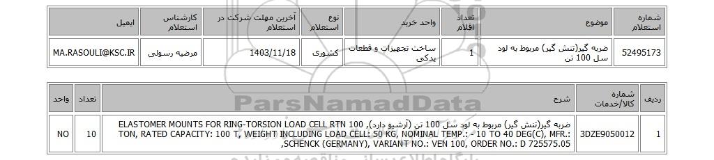52495173 ضربه گیر(تنش گیر) مربوط به لود سل 100 تن1ساخت تجهیزات و قطعات یدکیکشوری1403/11/18مرضیه رسولیMA.RASOULI@KSC.IR