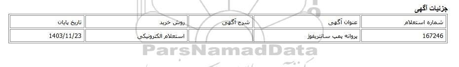 167246پروانه پمپ سانتریفوژاستعلام الکترونیکی1403/11/23