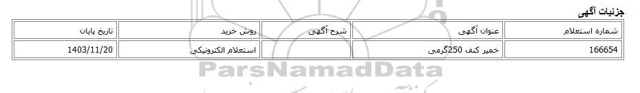 166654خمیر کنف 250گرمیاستعلام الکترونیکی1403/11/20