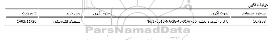 167208نازل به شماره نقشه No:170510-MA-38-45-014/P06استعلام الکترونیکی1403/11/20