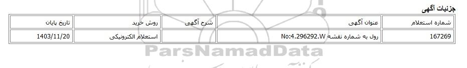 | 167269 | رول به شماره نقشه No:4.296292.W | استعلام الکترونیکی | 1403/11/20 |