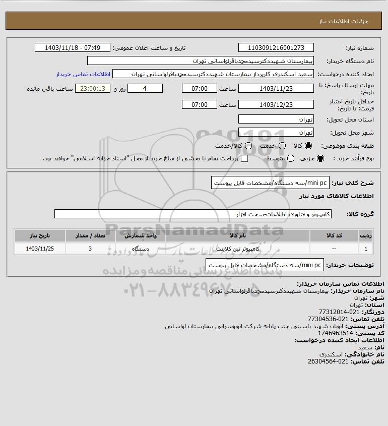 شرح کلی نیاز: mini pc/سه دستگاه/مشخصات فایل پیوست