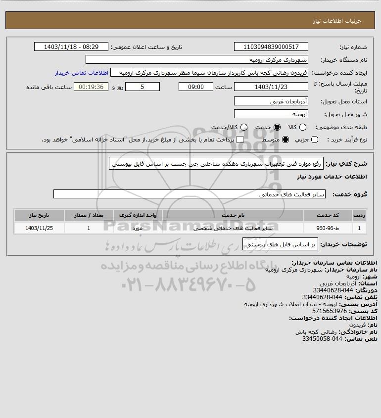 نام دستگاه خریدار:شهرداری مرکزی ارومیه