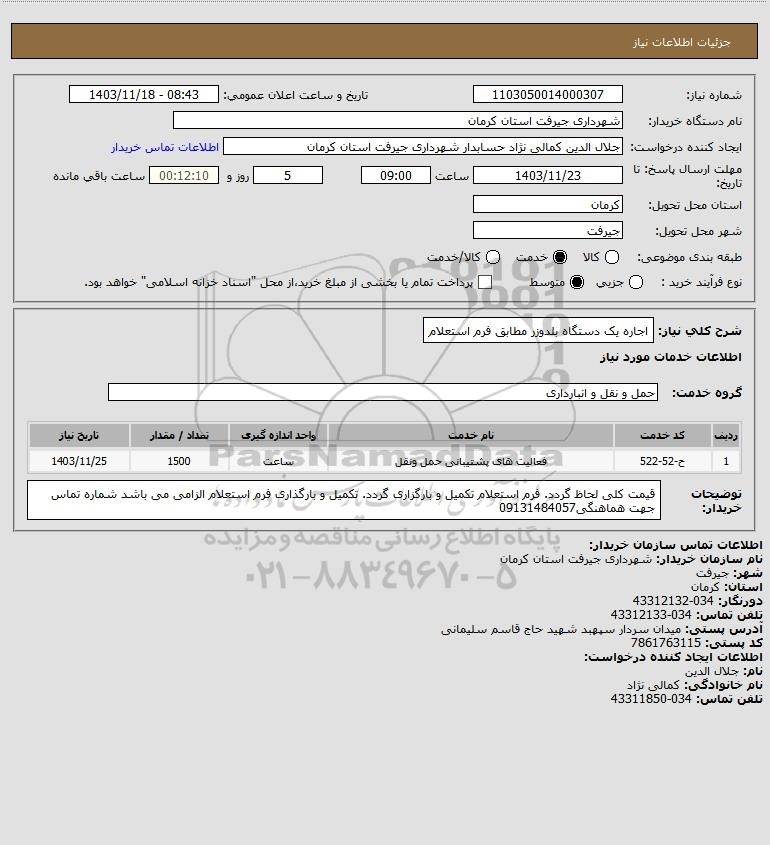 نام دستگاه خریدار:شهرداری جیرفت استان کرمان
