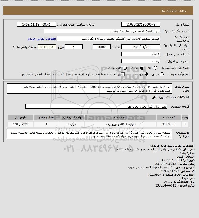 نام دستگاه خریدار:پلی کلینیک تخصصی شماره یک رشت
