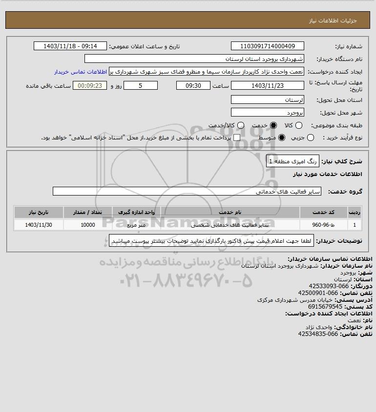 شرح کلی نیاز: رنگ امیزی منطقه 1