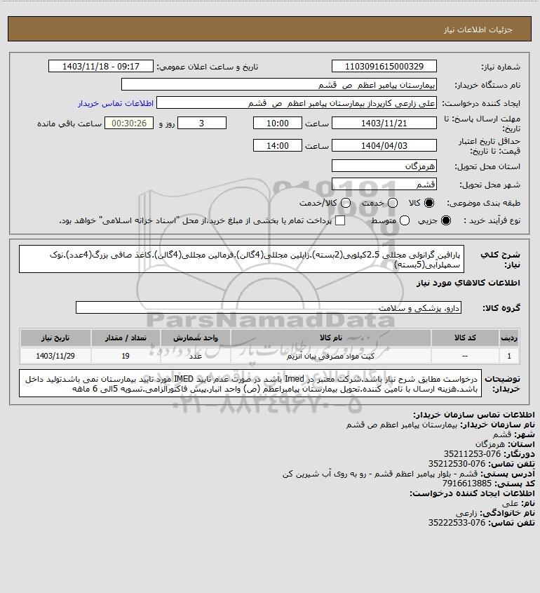 نام دستگاه خریدار:بیمارستان پیامبر اعظم ص قشم