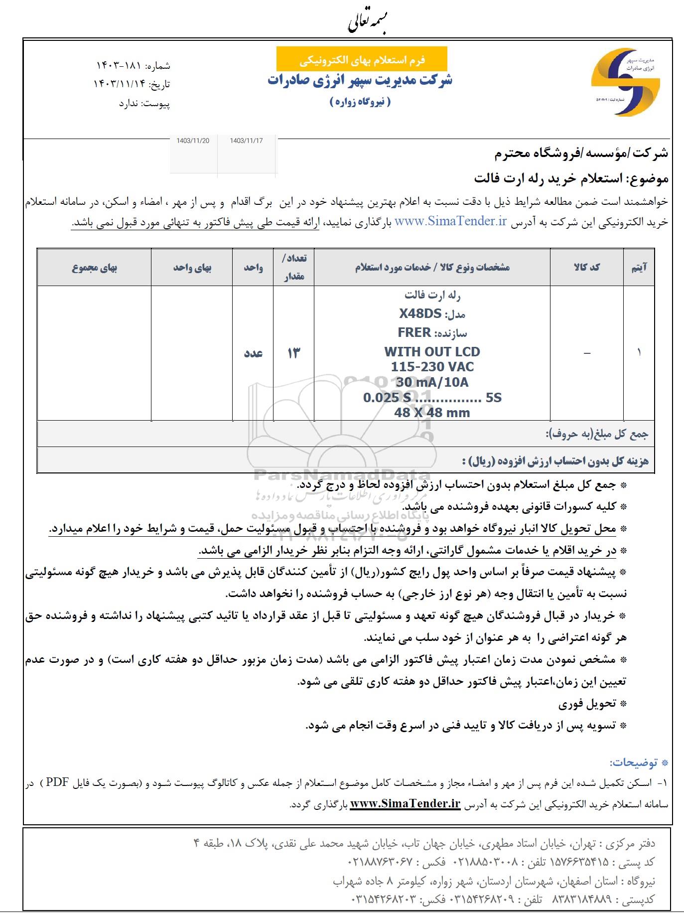 استعلام خرید رله ارت فالت, استعلام خرید رله ارت فالت