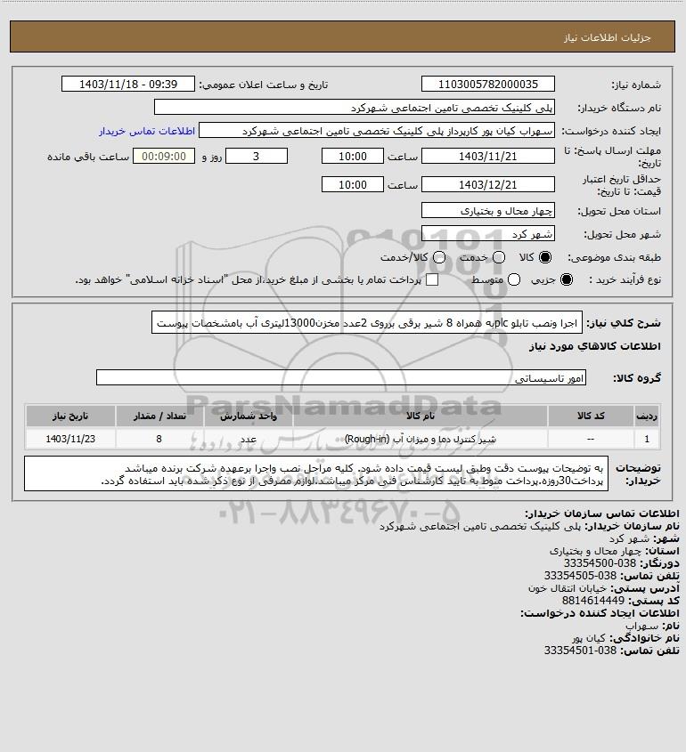 نام دستگاه خریدار:پلی کلینیک تخصصی تامین اجتماعی شهرکرد