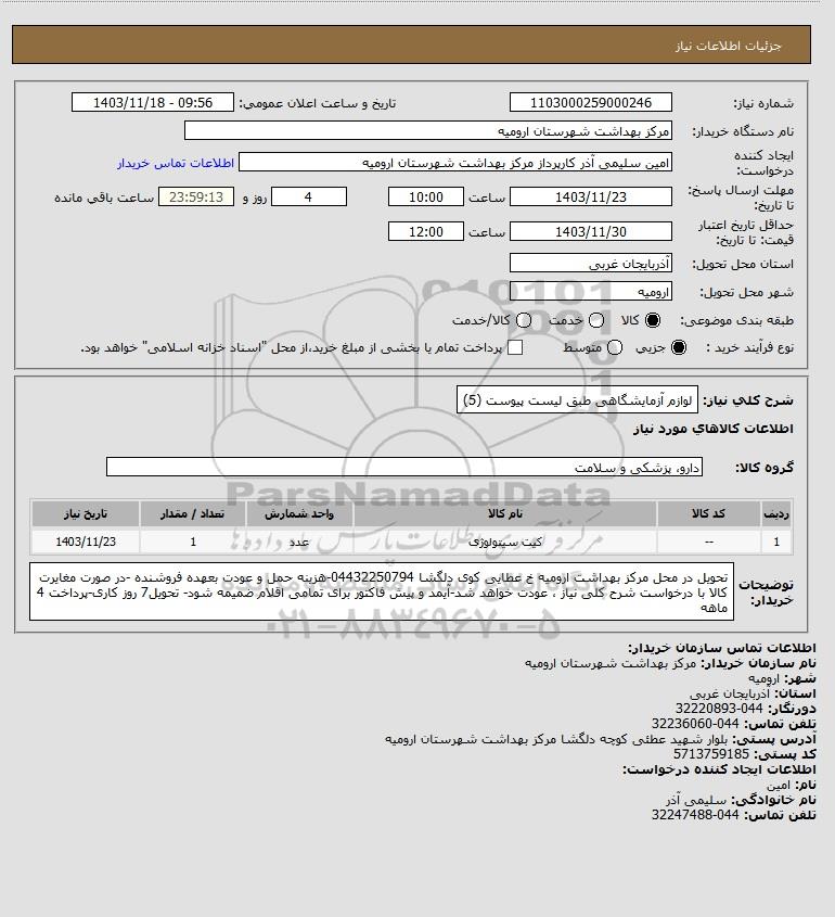 نام دستگاه خریدار:مرکز بهداشت شهرستان ارومیه
