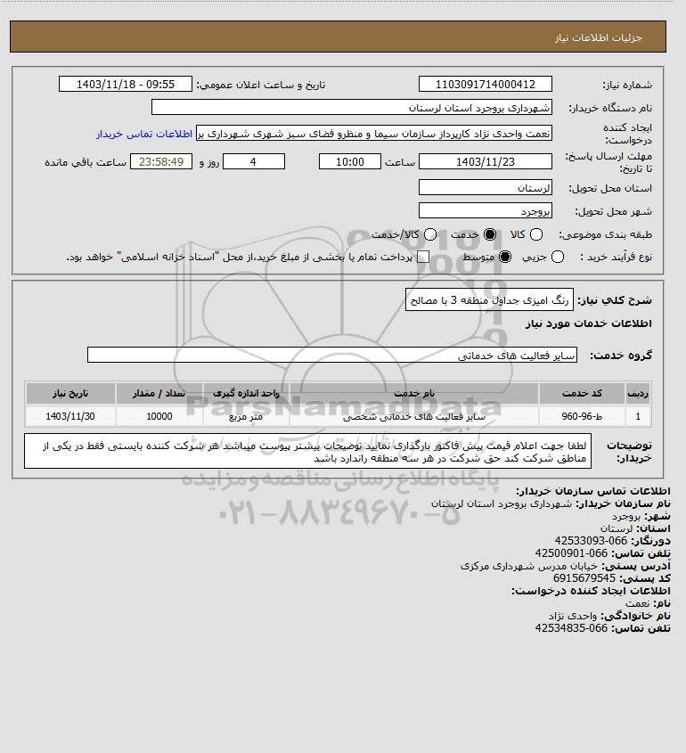شرح کلی نیاز: رنگ امیزی جداول منطقه 3 با مصالح