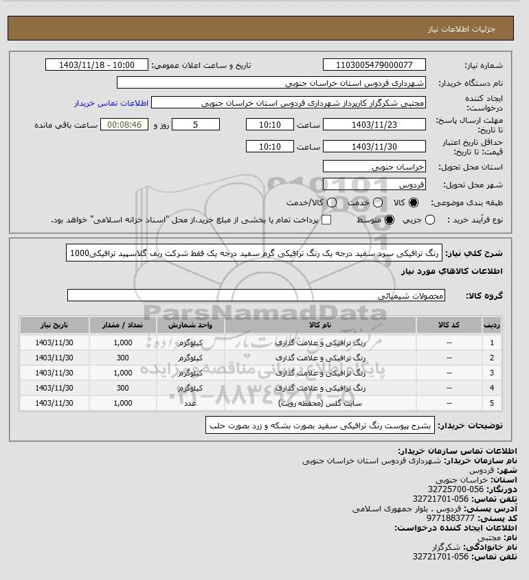 3 -- رنگ ترافیکی و علامت گذاری کیلوگرم 1,000 1403/11/30