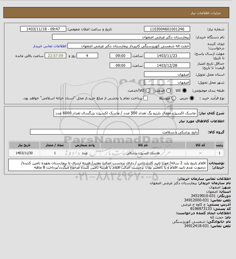 استعلام ماسک اکسیژن اطفال بارزرو بگ تعداد 500 عدد / ماسک اکسیژن بزرگسال تعداد 6000 عدد, استعلام ماسک اکسیژن اطفال بارزرو بگ تعداد 500 عدد / ماسک اکسیژن بزرگسال تعداد 6000 عدد