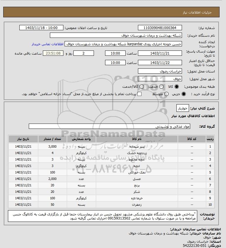 نام دستگاه خریدار:شبکه بهداشت و درمان شهرستان خواف