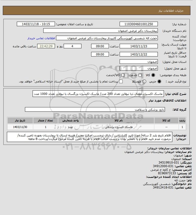 1 -- ماسک اکسیژن پزشکی عدد 1 1403/11/30