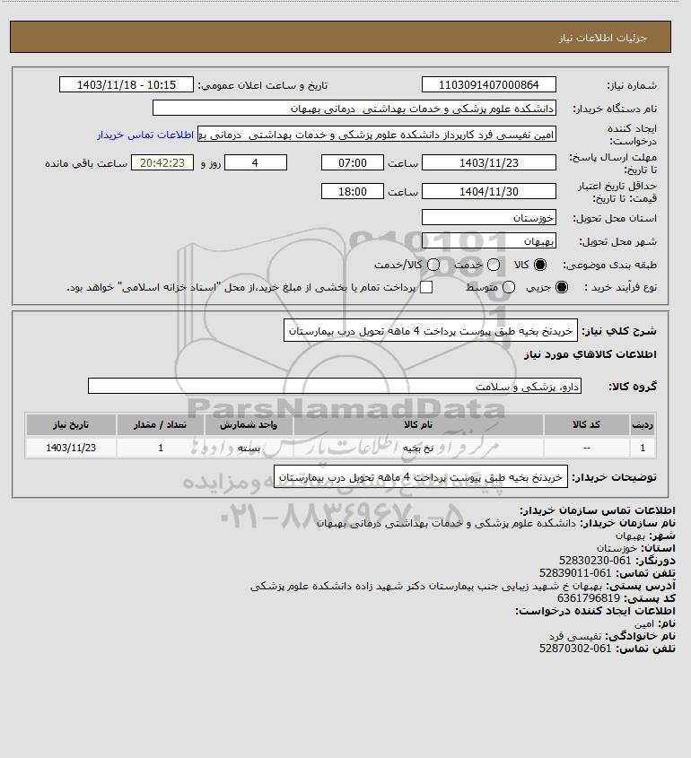 نام دستگاه خریدار:دانشکده علوم پزشکی و خدمات بهداشتی درمانی بهبهان