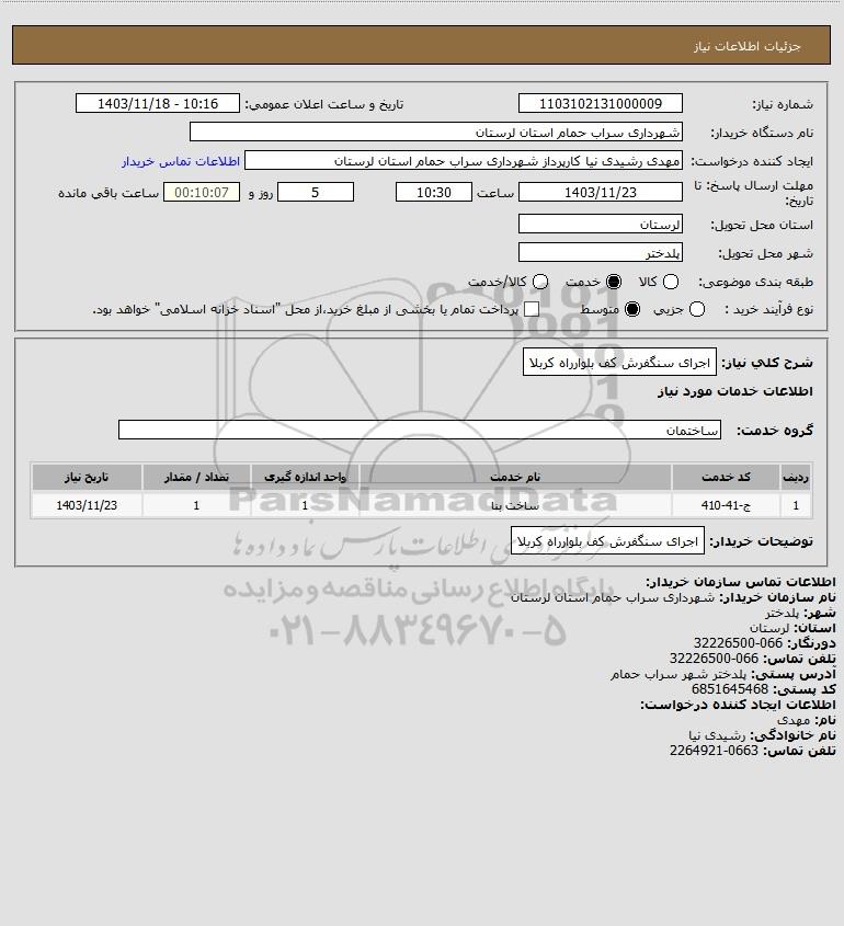 شرح کلی نیاز: اجرای سنگفرش کف بلوارراه کربلا