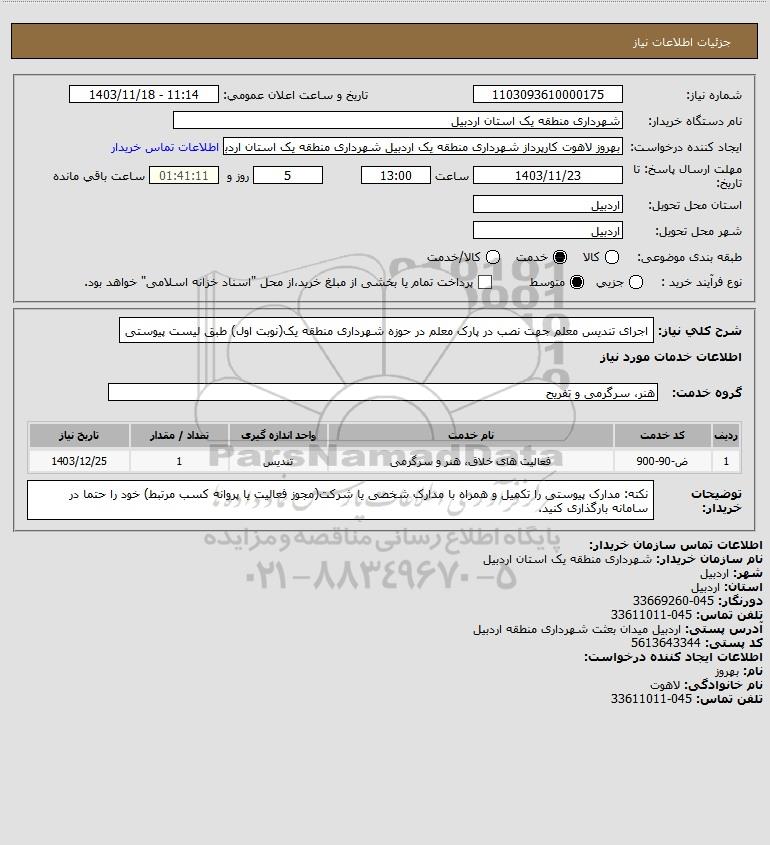 نام دستگاه خریدار:شهرداری منطقه یک استان اردبیل