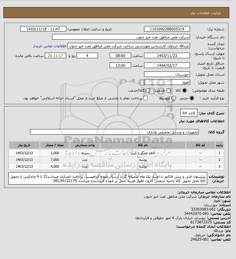نام دستگاه خریدار:شرکت ملی مناطق نفت خیز جنوب