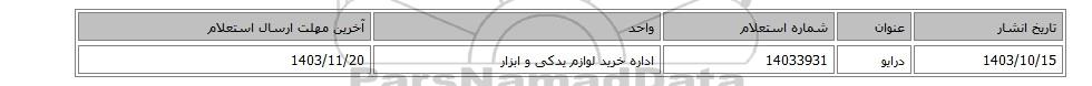 | 1403/10/15 | درایو | 14033931 | اداره خرید لوازم یدکی و ابزار | 1403/11/20 |