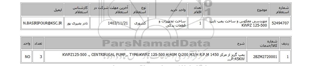 52494707مهندسی معکوس و ساخت پمپ تایپ KWPZ 125-5001ساخت تجهیزات و قطعات یدکیکشوری1403/11/21نادر بصیری پورN.BASIRIPOUR@KSC.IR