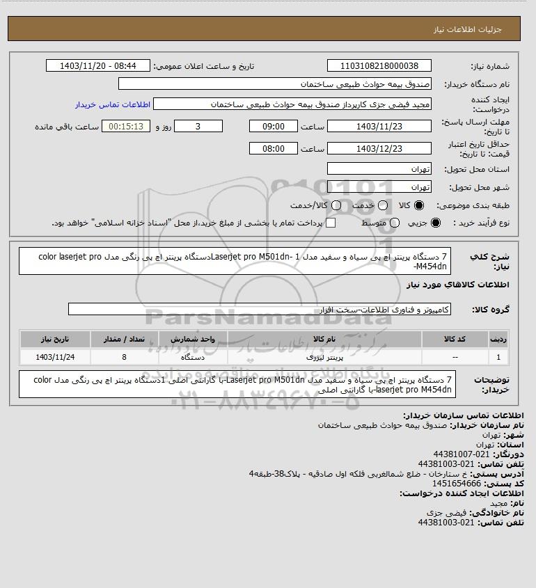 | 1 | -- | پرینتر لیزری | دستگاه | 8 | 1403/11/24 |