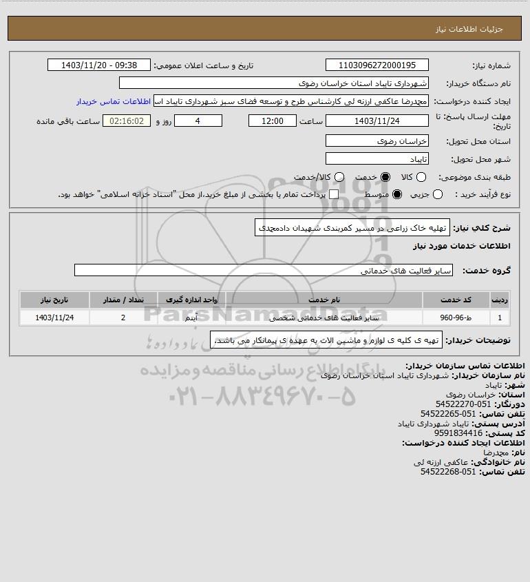 نام دستگاه خریدار:شهرداری تایباد استان خراسان رضوی
