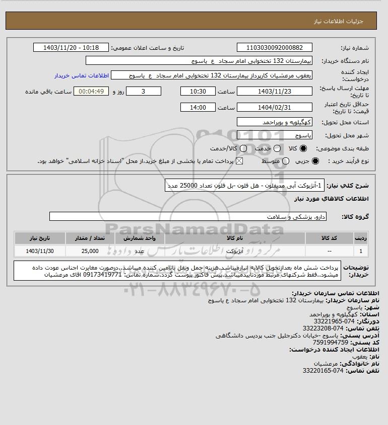 | 1 | -- | آنژیوکت | عدد | 25,000 | 1403/11/30 |