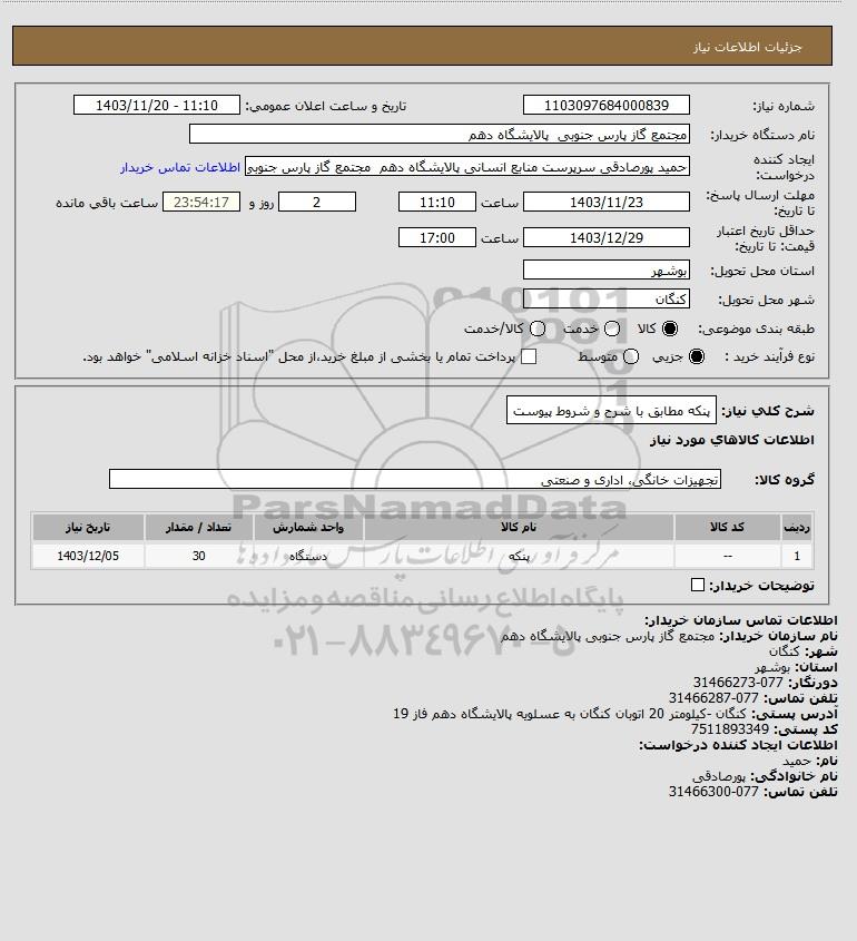 شماره نیاز: 1103097684000839