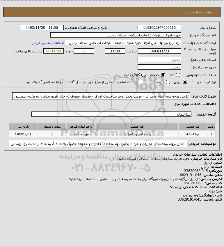 نام دستگاه خریدار:حوزه هنری سازمان تبلیغات اسلامی استان اردبیل