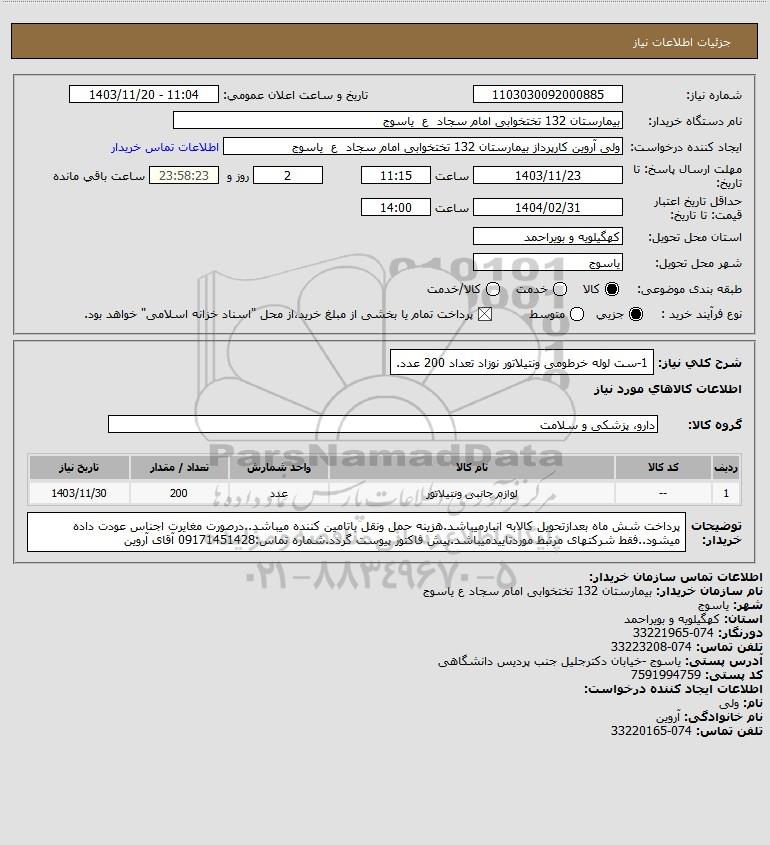نام سازمان خریدار: بیمارستان 132 تختخوابی امام سجاد ع یاسوج