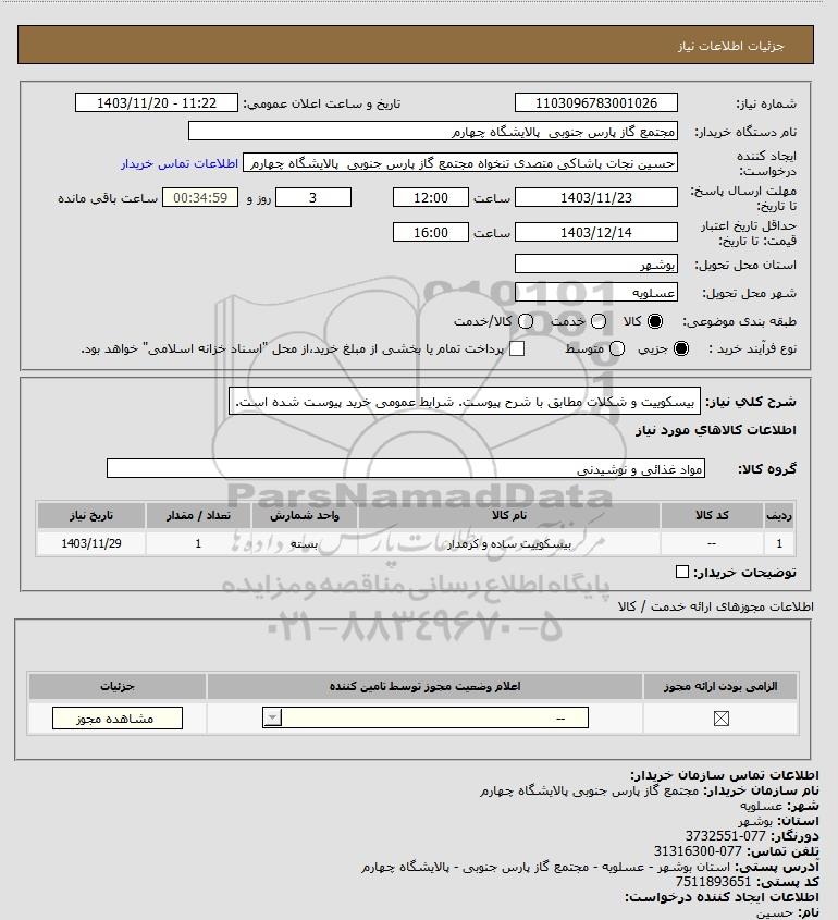 شرح کلی نیاز: بیسکوییت و شکلات مطابق با شرح پیوست. شرایط عمومی خرید پیوست شده است.